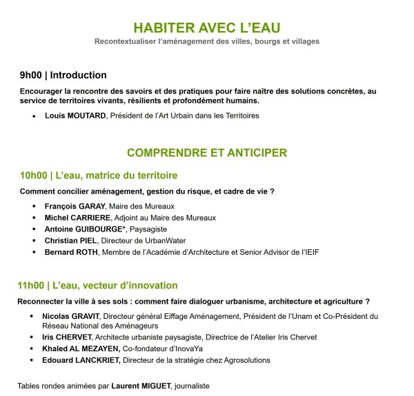 La remise du Prix national de l'Art urbain au ministère de la Transition écologique est précédée de tables rondes d'échanges et d'informations avec différentes personnalités (administration, élus, chercheurs, professionnels du cadre de vie...) sur le thème annuel.
